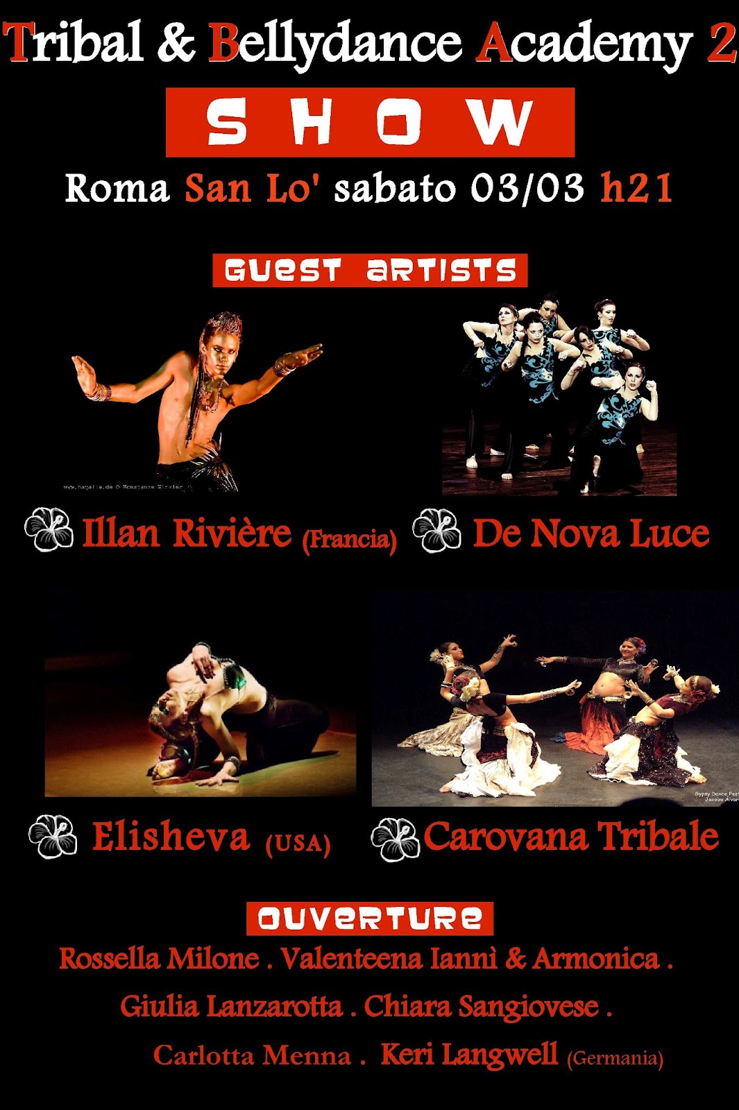Ospiti della data romana del tour europeo del "BELLYDANCE INFUSION PROJECT" di Manca Pavli e Amaya Dance Company, performance tribal fusion di Carlotta Menna con il Roma Tribal Project